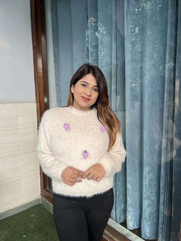 Pair it with jeans, skirts, or cargo pants for a trendy winter look 🍇❄️